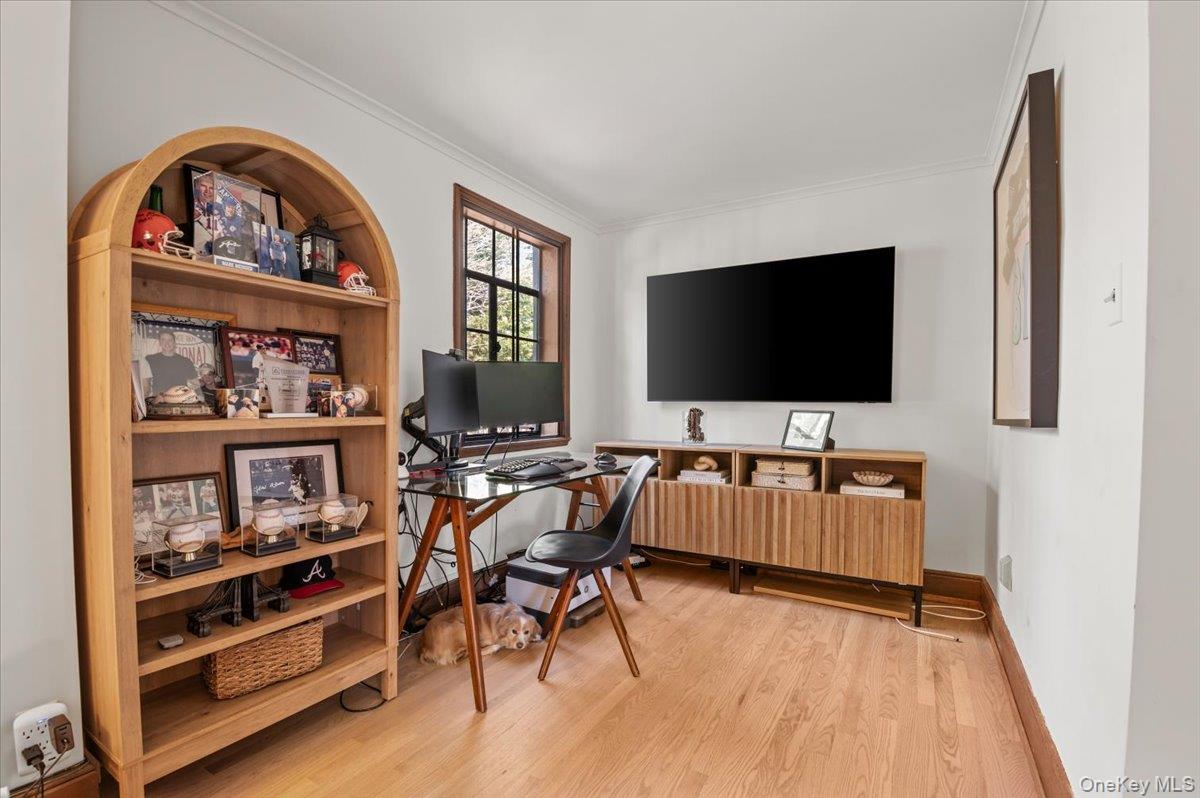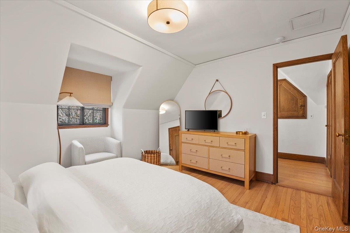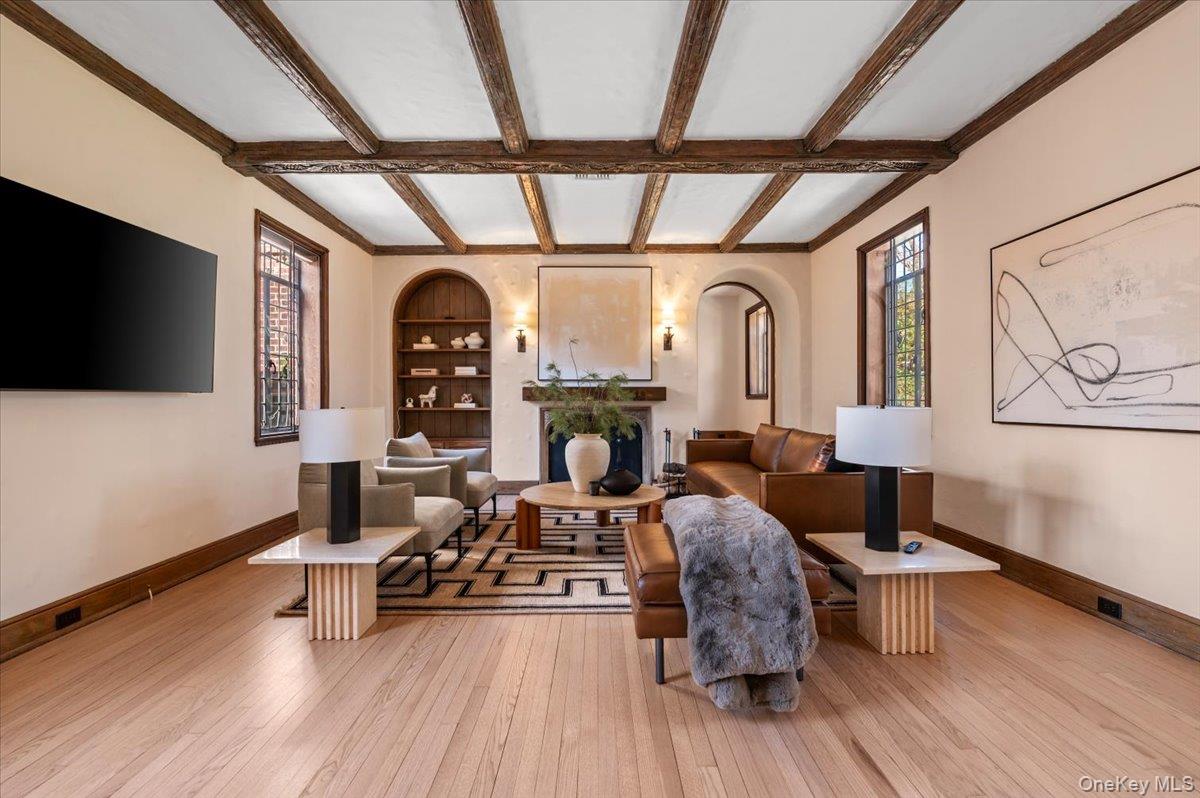 This bright and beautiful quintessential Tudor is located mid-block in desirable Beacon Hill, close to train and shops. This unique home exudes endless charm and character with original hand-carved balusters, restored stained glass and casement windows, textured plaster walls, original carved-beamed ceiling, rare Chestnut wood doors, wood-burning fireplace, and Vermont slate roof. With 4 bedrooms, 3.5 baths, finished lower level and hardwood floors throughout, this 2500 sq-ft updated residence features spacious rooms, a Chef's kitchen with large center island with service sink and breakfast bar, Wolf gas cooktop with pot-filler, Wolf ovens (with steam and convection), Bosch dishwasher and GE Monogram refrigerator, an Aquapure water filtration system, plus a spacious Primary Suite with new custom blinds. All full bathrooms are connected or en-suite and the lower level provides a large laundry area with additional pantry and LG appliances. The rear entry hall boasts a 'mud room' with new custom shoe tree. Comfort and peace of mind is yours with energy-efficient multi-zone gas heat, Central Vac, Central Air, heated 2-car garage, new alarm system and a whole-house generator. Nestled on 1/3 acre, you will enjoy private, idyllic landscaped grounds with multiple slate patios and stone walkways. Part of Port Washington School District with Daly Elementary School, with $250 annual Beacon Hill HOA fee for access to beach and kayak storage. (Sellers love the home but are relocating.)
