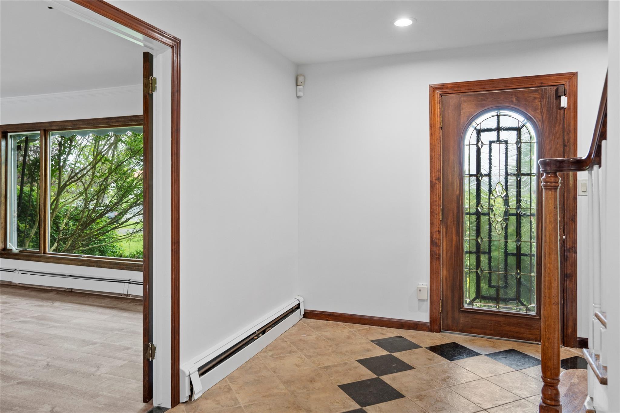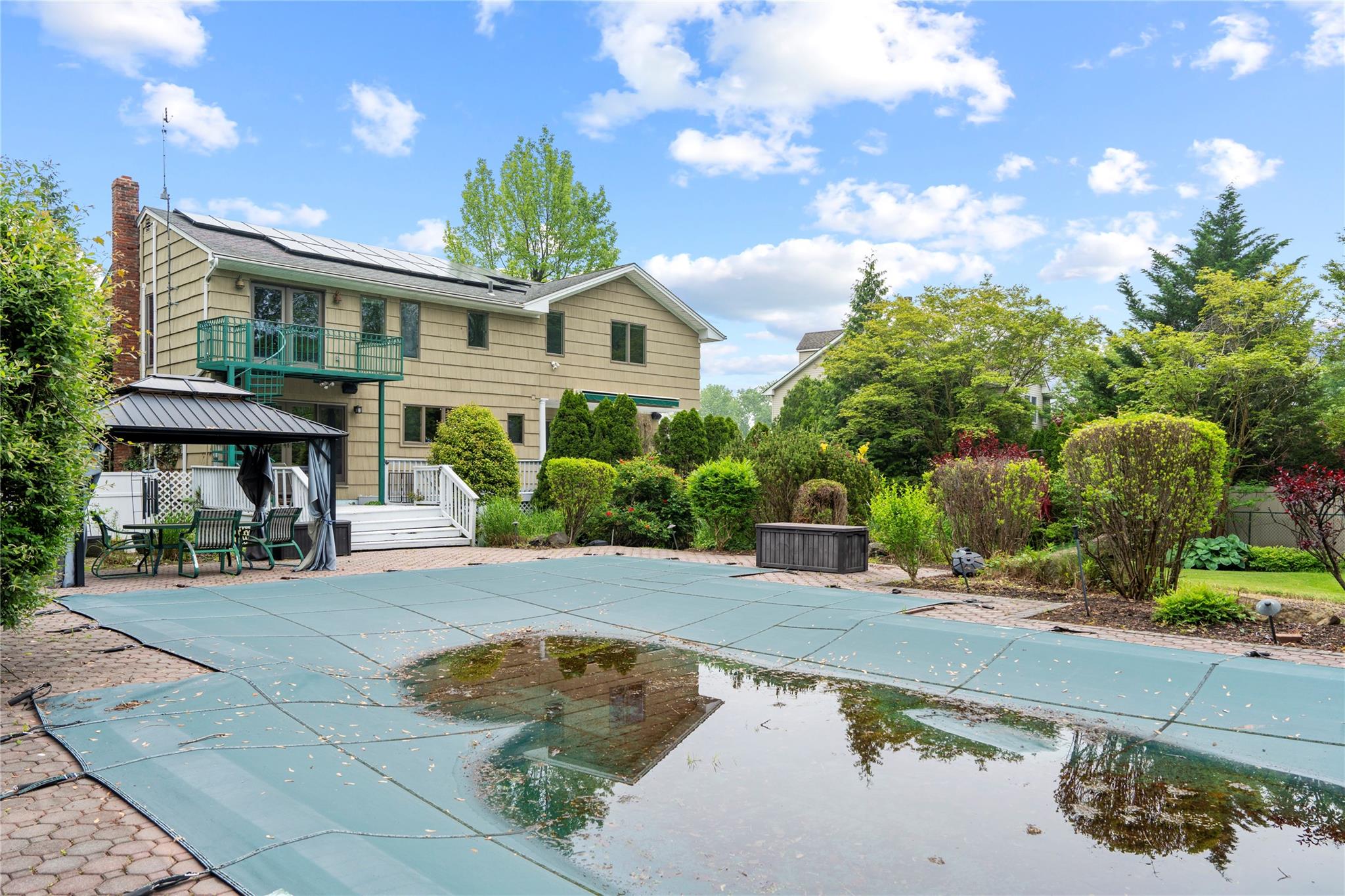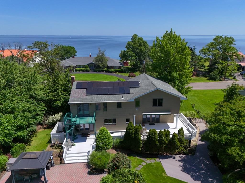Experience the epitome of coastal living in this spacious 4-bedroom, 2.5-bath Colonial nestled on iconic East Island with breathtaking year-round views of the Long Island Sound. Enjoy stunning sunsets from both the first and second floors, complementing the two expansive decks that overlook a SPECTACULAR landscaped yard and a 20' x 40' vinyl pool. Upon entering, you are welcomed by a graceful foyer leading to a spacious den with gas fireplace and a living room that offers delightful water views. The formal dining room and granite kitchen opens to the formal dining room with glass doors to the deck, providing the perfect setting for easy living and grand entertaining. The second level features a Primary bedroom complete with an en-suite bath, walk-in closet, and mesmerizing. Additionally, there are three more bedrooms, including an oversized room with vaulted ceiling and dual closets, offering a potential second Primary suite. A full bath in the hall services the additional bedrooms. The basement extends the living space with a cozy second den, ample closet storage, utilities (oil heat/split systems use electric), and a convenient washer/dryer area, with direct access to the two-car garage. Residents enjoy the privilege of private access to the beach, 4th of July races, parties and fireworks and block parties. Also known as Morgan's Island, which was developed by JP Morgan in 1903 when the only other inhabitants were his staff, East Island is one of "America's Best Kept Secrets". The island is secluded yet boasts proximity to town shops, restaurants, Glen Cove golf course and parks.