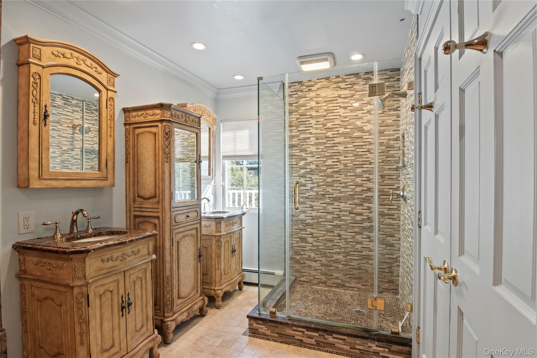 New to Market! If you are looking for a "Mini Compound" on a private cul de sac with a 4 BR/2.5 Bth expanded Colonial (3090 sq ft) on half an acre with a 2-car garage, separate legal duplex apartment (745 sq ft) plus newly re-marble dusted, heated salt-water pool /spa with waterfall, and a separate 300 sq-ft insulated pool house/studio with full bath, this is a must-see property! With high ceilings, hardwood floors, 2 fireplaces, updated kitchen with Thermador appliances, CAC, gas heat and a whole-house gas generator, this residence has it all! Low taxes: $18,960 Glen Cove Schools, access to Glen Cove beaches, parks and golf course, close to fine restaurants and shops.